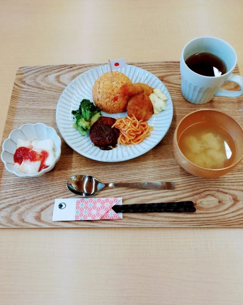 5月5日 子供の日! 季節・行事 2023.05.062023.06.04 こどもの頃よく食べた懐かしのお子様ランチをご提供いたしました。🎏チキンライス🍤エビフライ🍖ハンバーグ🍝ナポリタン🍖一口カツ🍮プリンのイチゴソース添え大人になった今でも食べたくなる欲張りなメニューにご入居者様もニッコリでした🥰 スタッフが作った折り紙のこいのぼりもとってもかわいい💞季節を感じてもらいたい、と器用なスタッフがいつも作ってくれています🌟